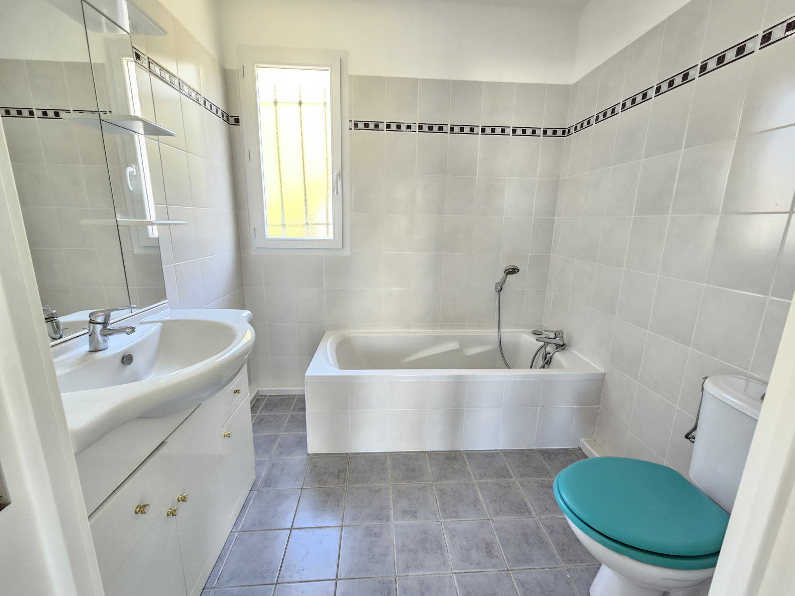 - Une salle de bain familiale avec fenêtre et WC.